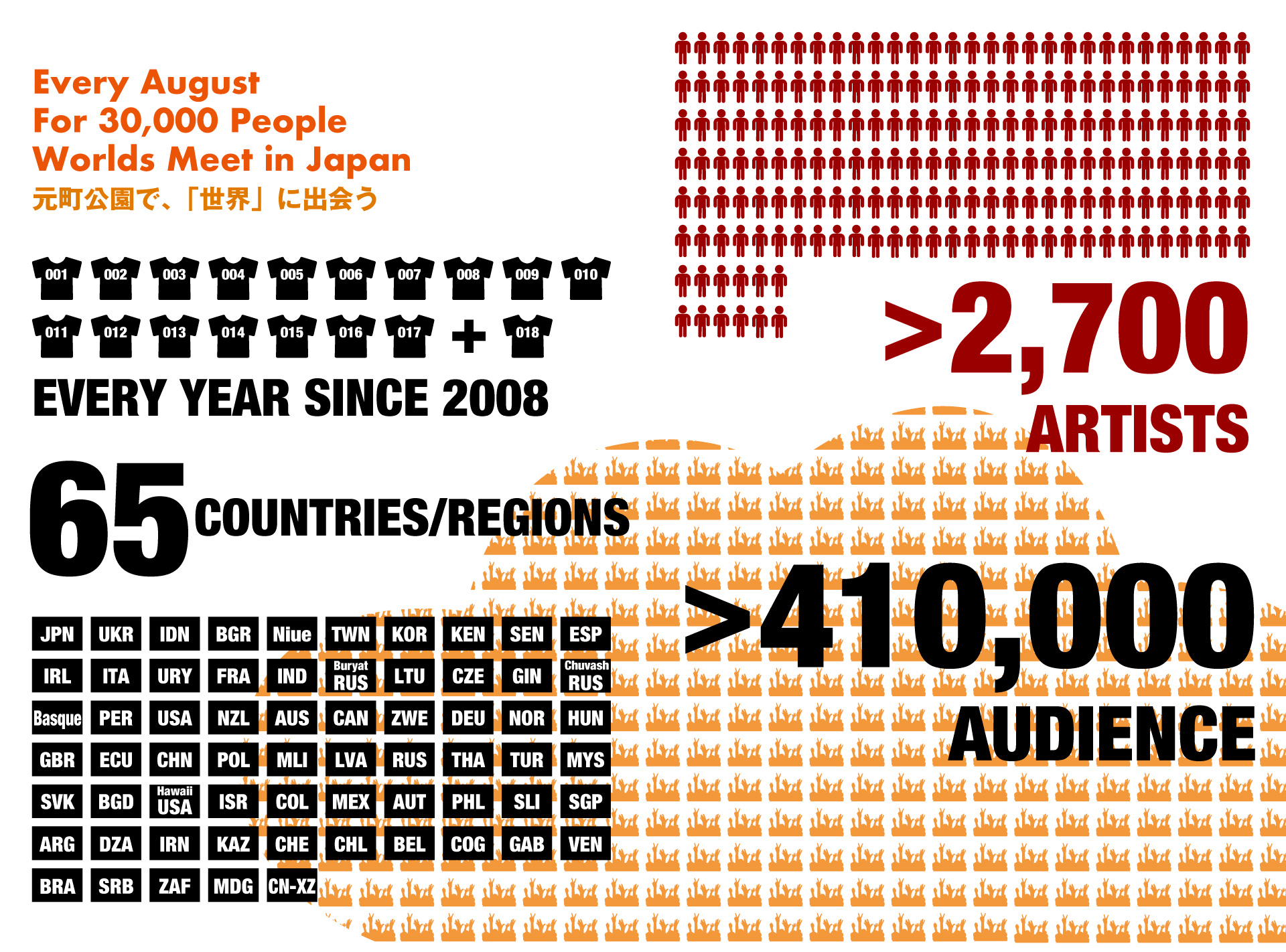 - アーティスト:46組(うちライブパフォーマンスが7組、14の国と地域)